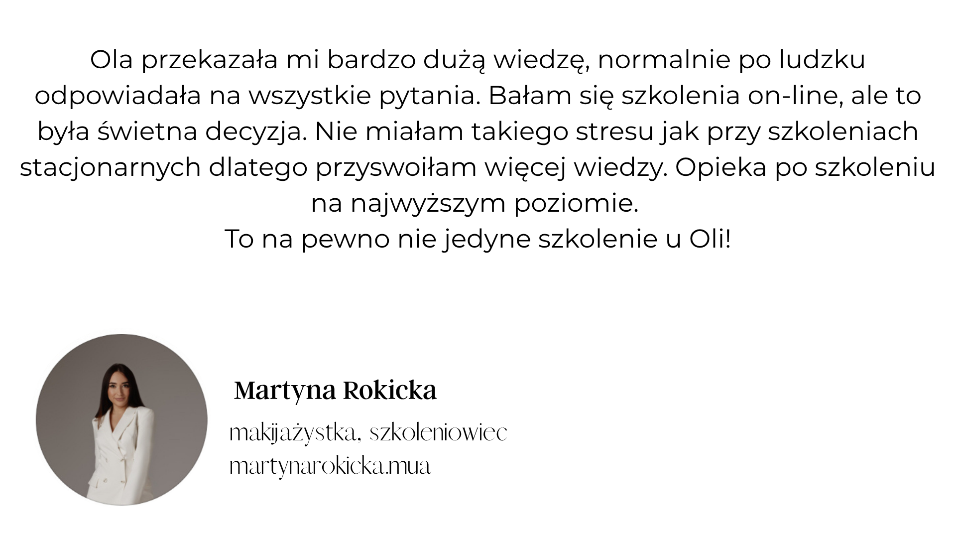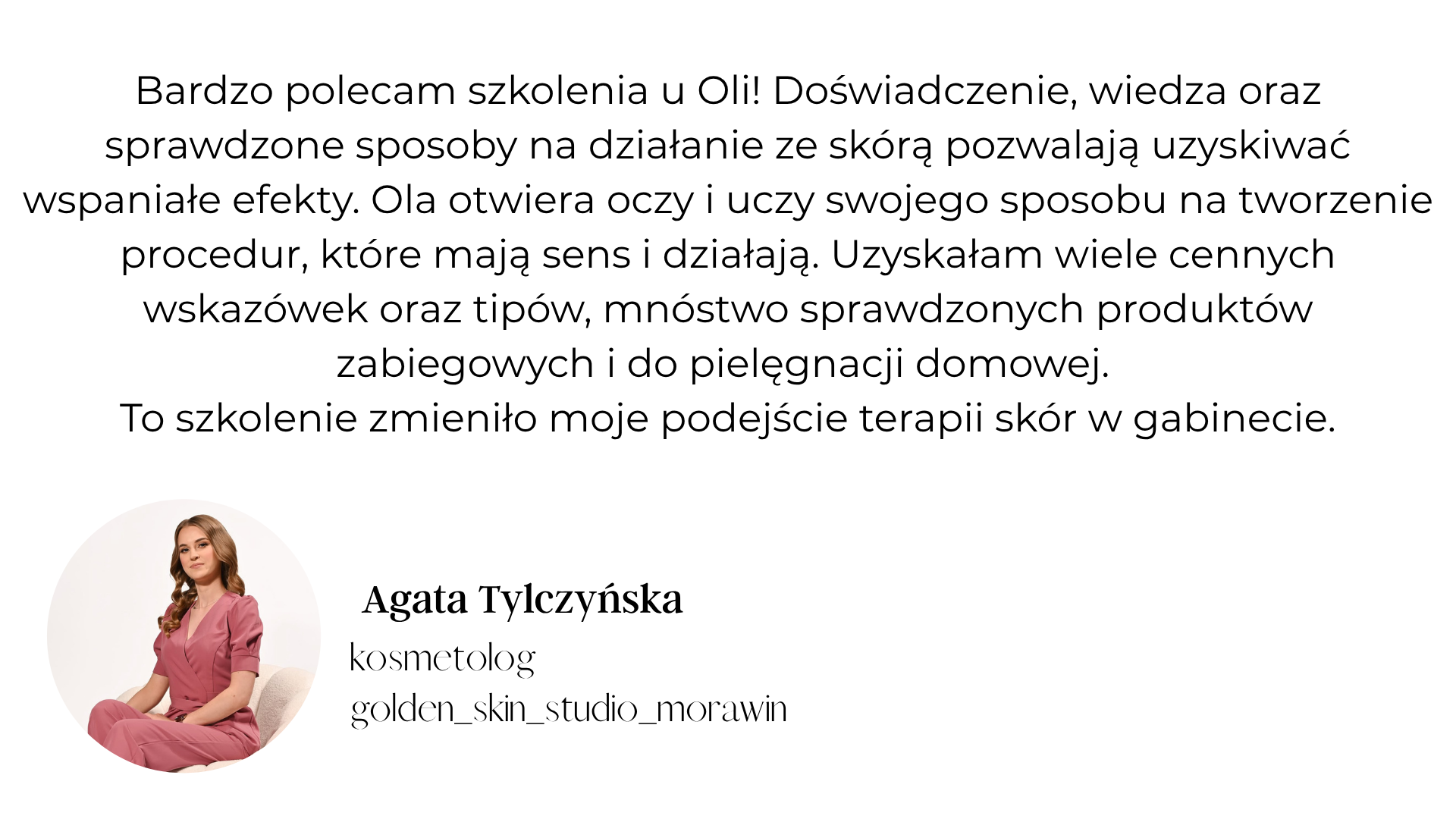 Jestem zabiegowcem, właścicielem gabinetu kosmetycznego, szkoleniowcem oraz autorką bestsellerowego szkolenia „Oczyszczanie wodorowe w terapiach łączonych”. Już w pierwszym miesiącu po premierze zaufało mi 37 specjalistów z branży beauty, mimo że wcześniej nigdy nie prowadziłam sprzedaży kursów online.