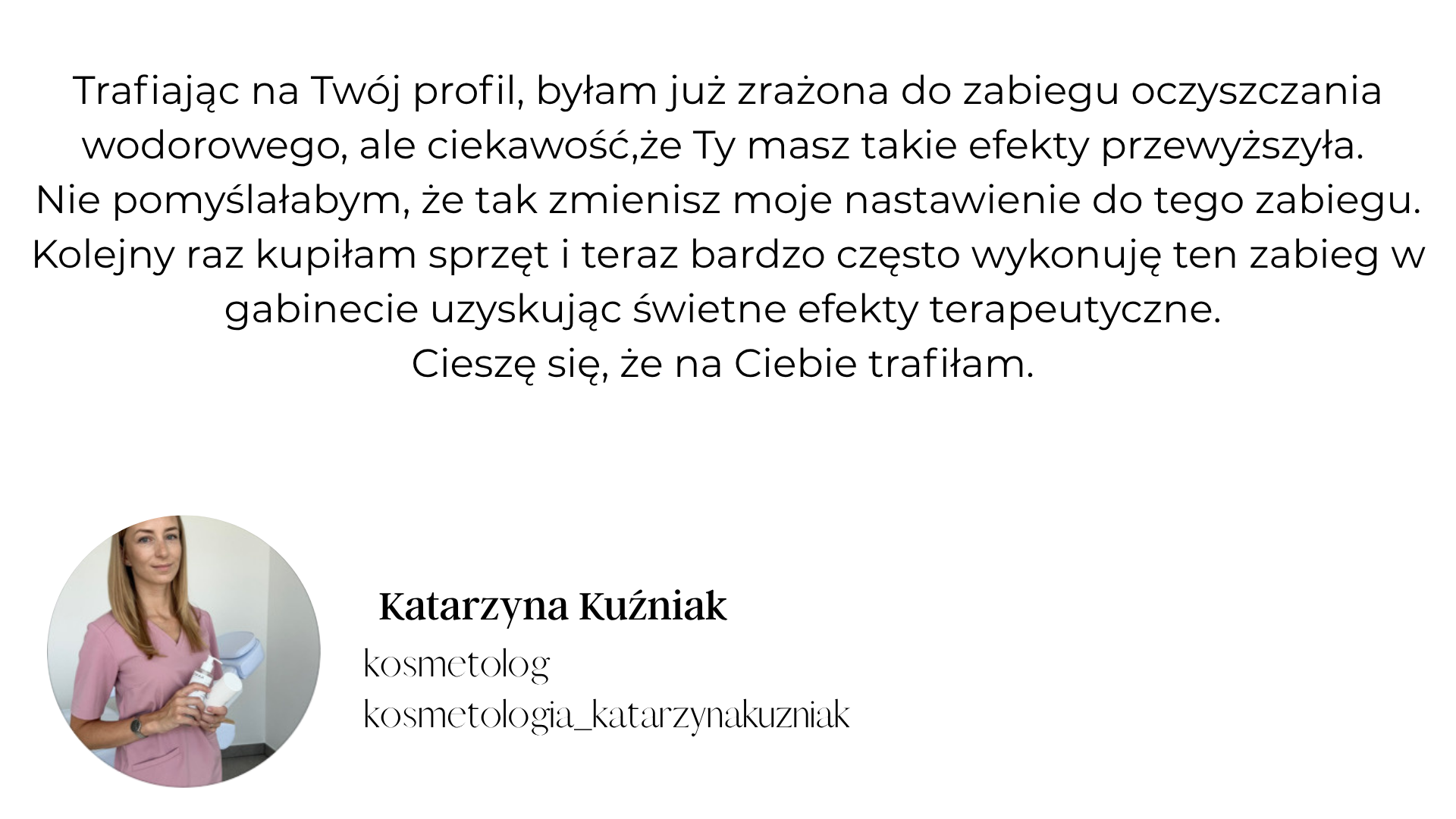 W ciągu kilku miesięcy stałam się dystrybutorem urządzeń do oczyszczania wodorowego PureH2 Skin oraz rozpoznawalnym w całej Polsce specjalistą zabiegów oczyszczania wodorowego – również wśród Polek mieszkających poza granicami kraju. Kursantki z całej Polski pokonują nawet 450 km, aby poznać moje autorskie podejście do zabiegu podczas szkoleń stacjonarnych.